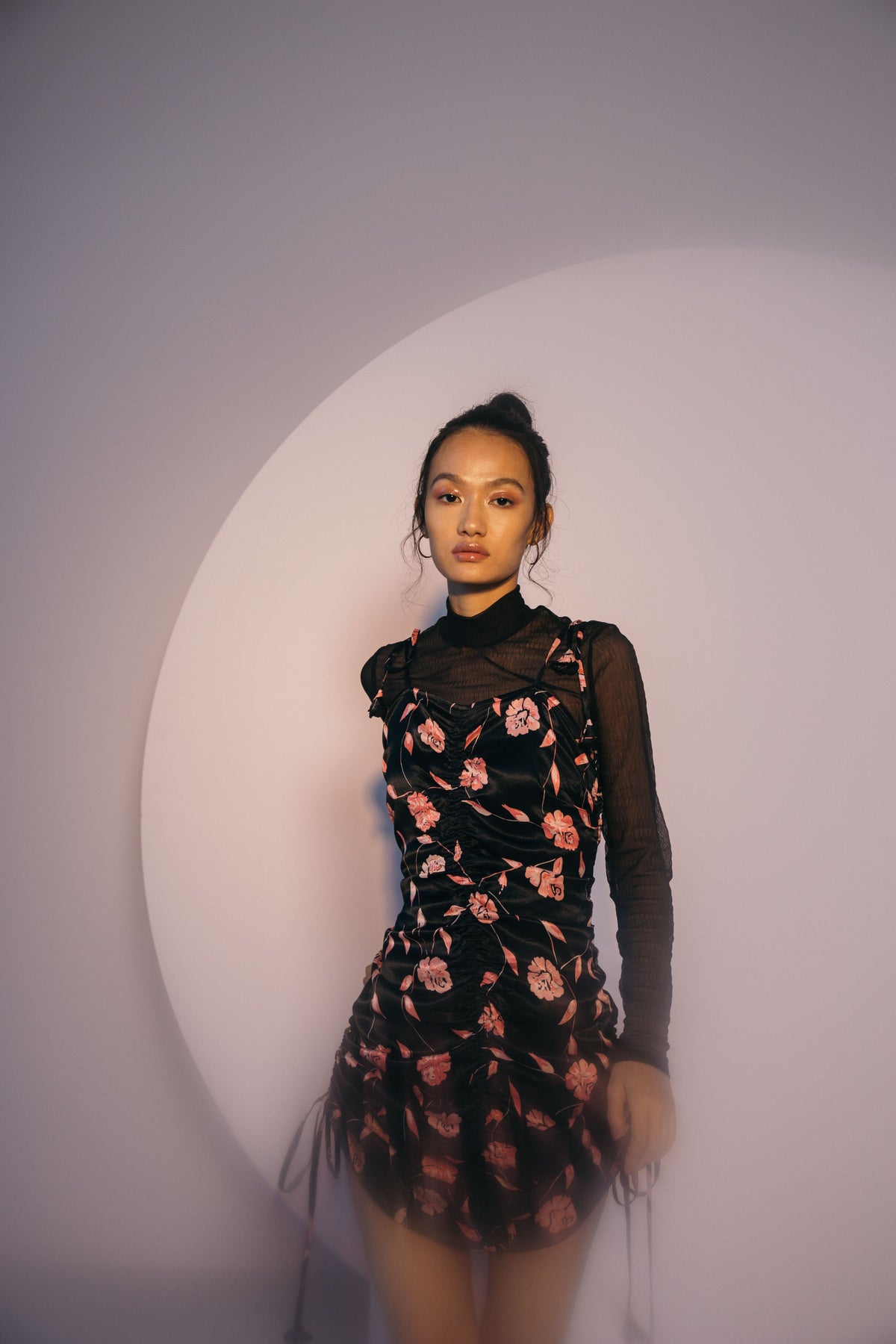Mini strappy dress with adjustable ties on either sides embellished with upcycled hand-made tassels. Pair with the SIlina Trench for an ounce of extra.