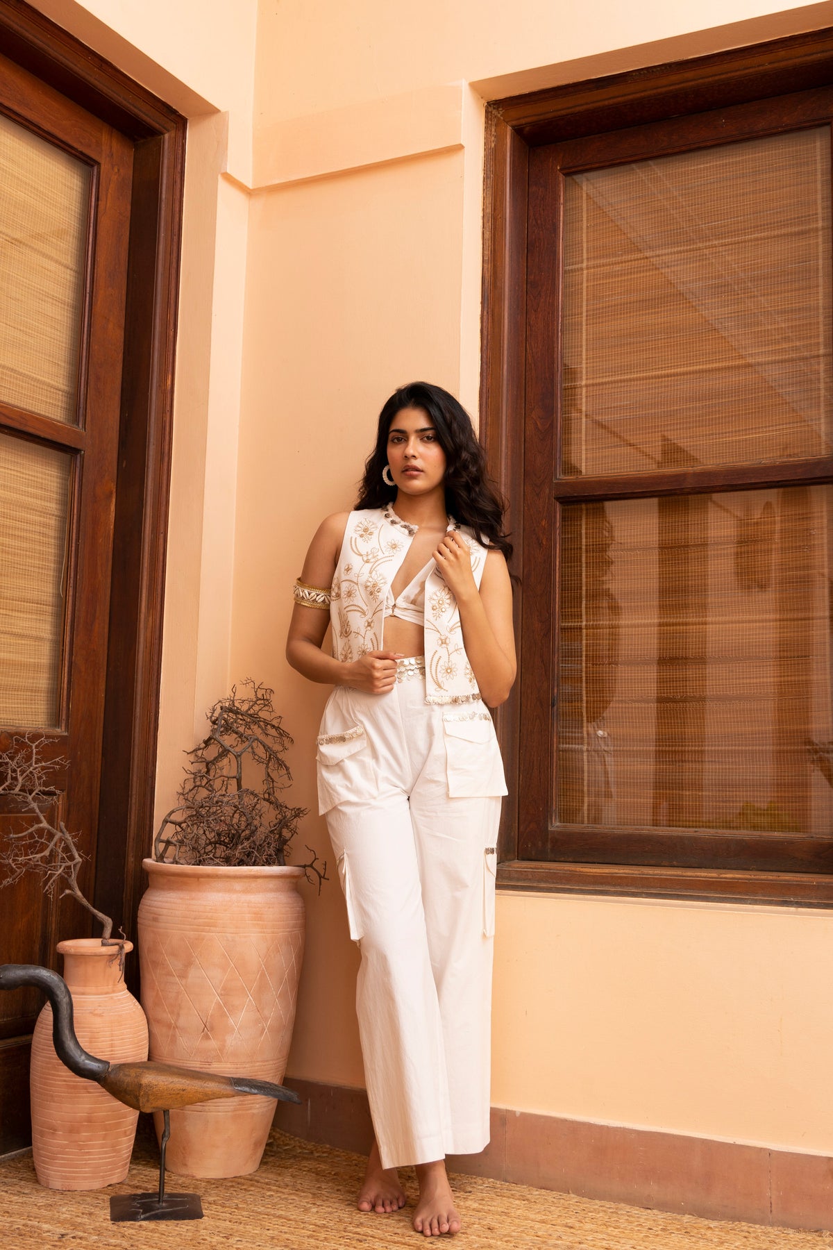 Cargos are back and here is our version!- embellished pockets, relaxed fit, and in the softest cotton. Sits high on the waist. Pair with the Romi Jacket to complete the look.